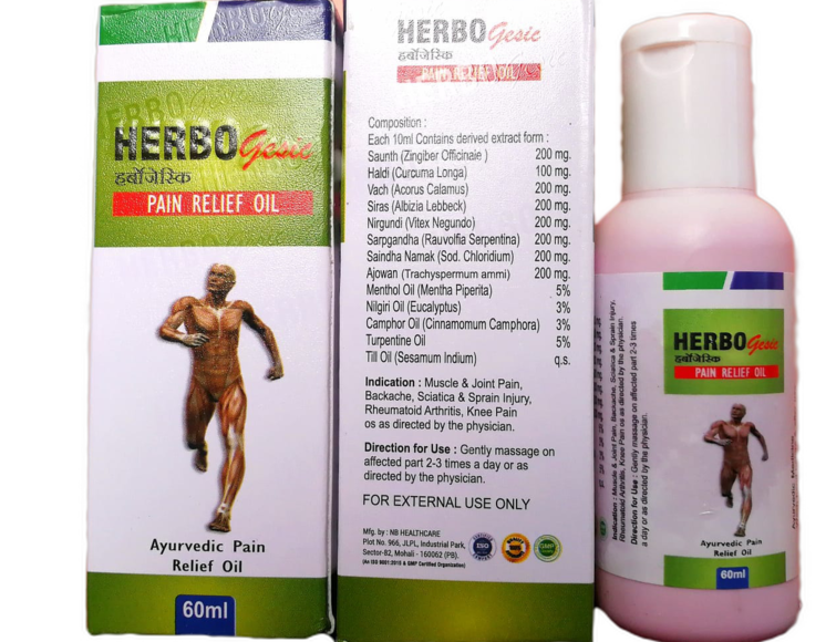Herbogesic Oil is the power full combination of herbal Oils & pain reliever ingredients which provide instant relief in Pains of bones Pains of Ligaments, pain of muscle and tender bones.